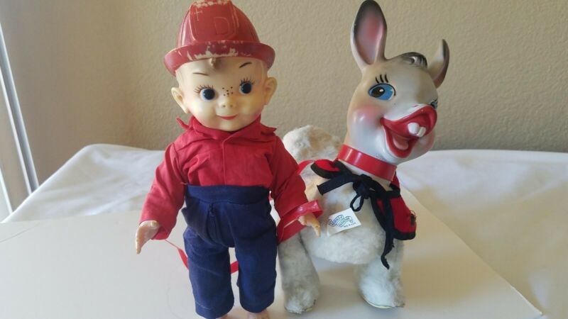 Vintage Firermen Doll with Pull Donkey by Knickerbocker