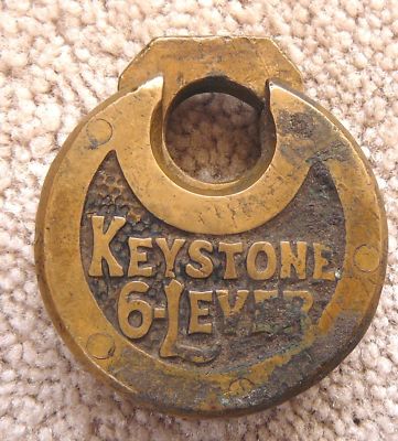 Title (ebay affiliate link): KEYSTONE Solid Brass - Antique Six Lever Padlock - EX