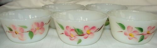 FIRE KING PEACH BLOSSOM CUSTARDS (5) MILK GLASS