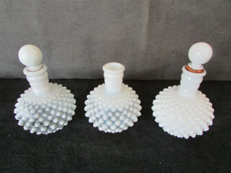 3 White Milk Glass Bottles E-48