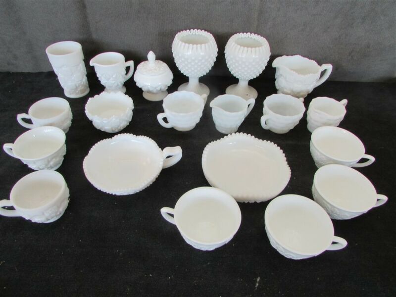 Title (ebay affiliate link): 20 Assorted Items of White Milk Glass E-75