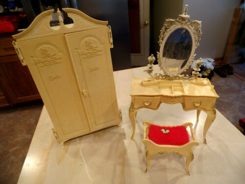 Title (ebay affiliate link): VINTAGE BARBIE SUSY GOOSE WARDROBE & VANITY DRESSER PLASTIC FURNITURE SET