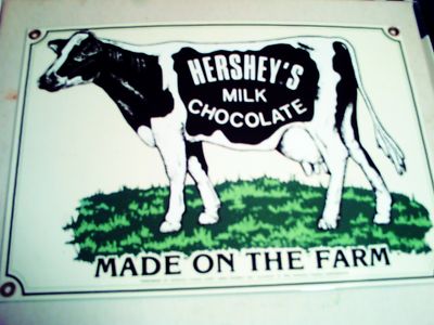 HERSEY'S MILK CHOCOLATE~MADE ON THE FARM~PORCELAIN SIGN