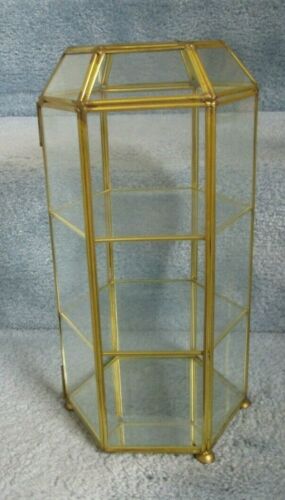 Vintage Retro Glass Brass Curio Cabinet Case Shelf Display Table Top 11 1/2" H