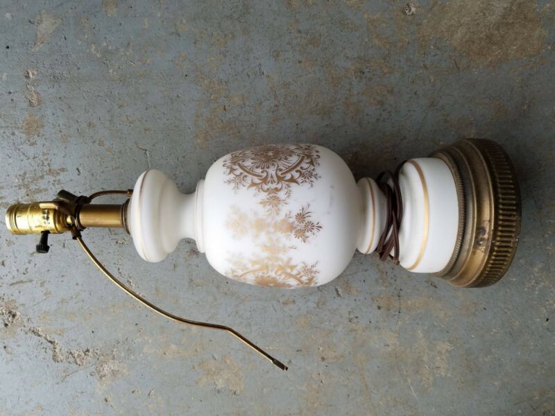 Title (ebay affiliate link): Victorian/vintage/antique White Milk Glass Table Lamp. 3 -way. Works great.