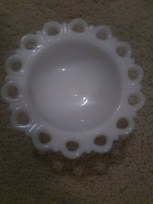 Title (ebay affiliate link): Vintage White Milk Glass Eyelet Footed Candy Dish Compote Bowl Rare