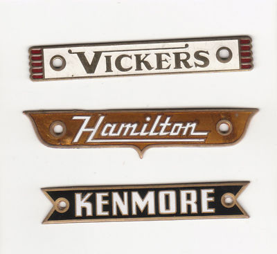 3 X VINTAGE ENAMELED APPLIANCE TAGS vickers hamilton