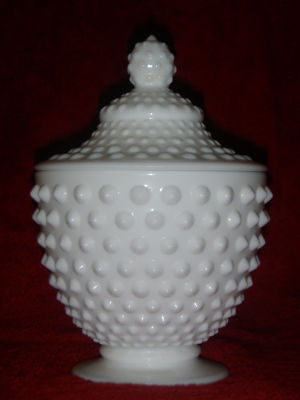 FENTON VINTAGE MILK GLASS HOBNAIL CANDY DISH WITH LID