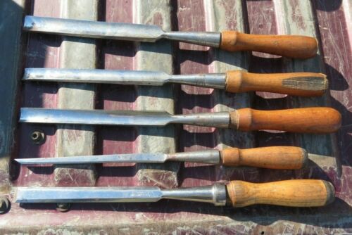 Title (ebay affiliate link): Vintage Lot 5 pc OVB Keen Bevel Edge Gouge Firmer Wood Socket Chisel Tool