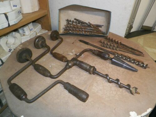 Title (ebay affiliate link): 3 Vintage Hand Auger Bit Brace Drill With a bunch of Bits