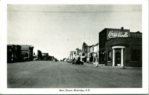 Vintage Postcard MOBRIDGE South Dakota "MAIN STREET" COCA COLA SIGN