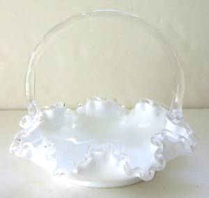 Fenton White Milkglass Basket Bowl W/ Silver Crest