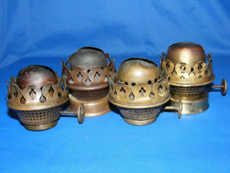 Title (ebay affiliate link): 4 x Small Vintage 1" Wick, British Brass Oil Lamp Burners, 2 With Font Collars
