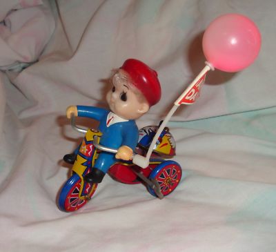 Vintage MTU Korea Tin Wind-up Toy - Boy on Tricycle
