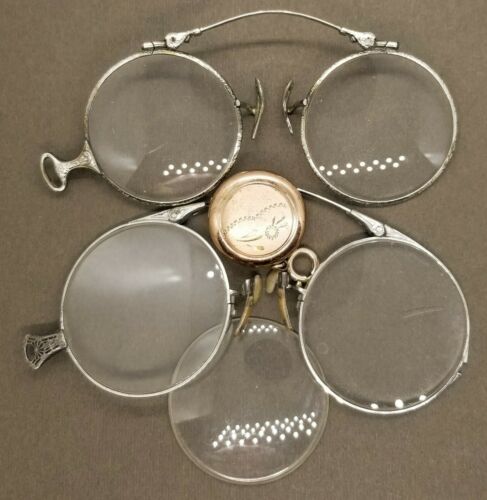 Title (ebay affiliate link): 2 PAIR 14K,12K GOLD-FILLED FOLDING PINCE NEZ EYEGLASSES, RETRACTABLE CHAIN PIN