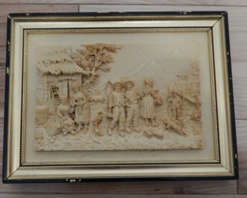 ANTIQUE RELIEF CARVED SCENE LES DEPART POUR LES CHAMPS