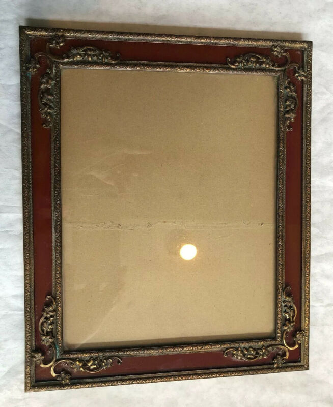 Antique Art Deco Ornate Metal and Glass Picture Frame