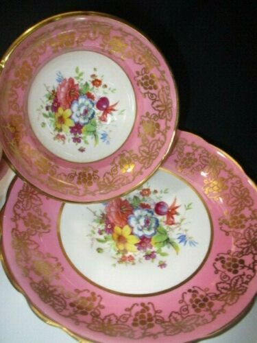 CUP SAUCER HAMMERSLEY SIGNED HOWARD SPRAYS ROSE PINK BAND GOLD OVERLAY GRAPES