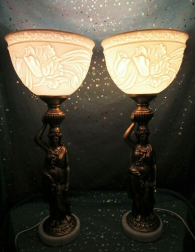 Pair of Custom Greek Lady Figural Lamps Marble Bases