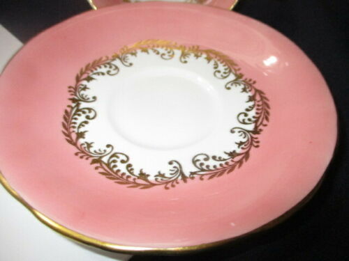 ORPHAN SAUCER AYNSLEY GOLD SCROLL LACE SOFT BLUSHING PINK VERGE