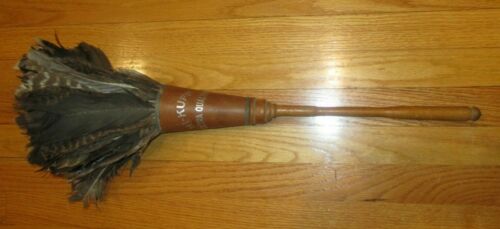 VINTAGE TURKEY FEATHER "HI - KUFF" ADVERTISING WOOD HANDLED FEATHER DUSTER