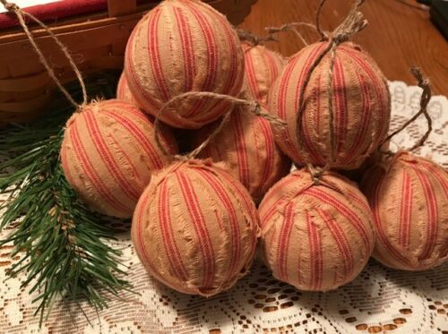 Title (ebay affiliate link): 10 Primitive STRIPED HOMESPUN Fabric RAG BALLS Christmas Ornaments Farmhouse