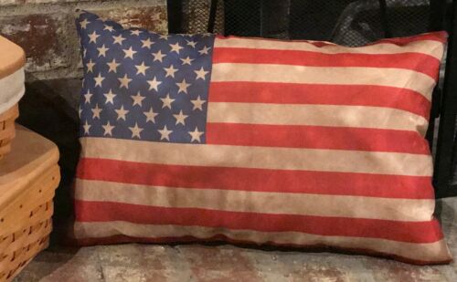 Title (ebay affiliate link): Primitive Coffee Stained USA Flag Pillow Handmade Farmhouse Patriotic DECOR ONLY