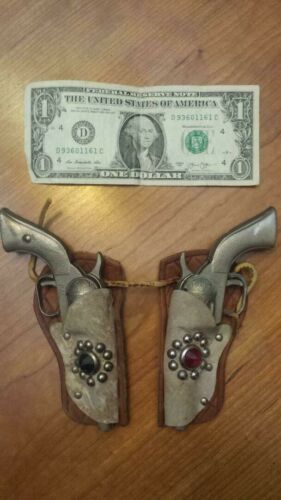 2 Vintage Hubley PAL Working Toy CapGuns with holsters