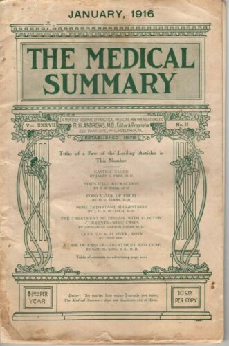 Title (ebay affiliate link): The Medical Summary. A monthly journal of practical medicine, ... v.37:10, 1916