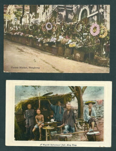 Title (ebay affiliate link): HONG KONG 2 old postcards "A wayside refreshment stall" & "flower market"