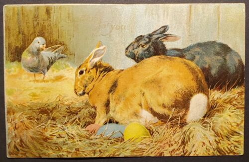 1900s EASTER RABBITS Postcard Antique Artist ERNEST NISTER Holidays EP DUTTON CO