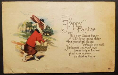 Title (ebay affiliate link): 1900s HAPPY EASTER POEM Greetings Postcard Antique Holidays GAY BUNNY 903