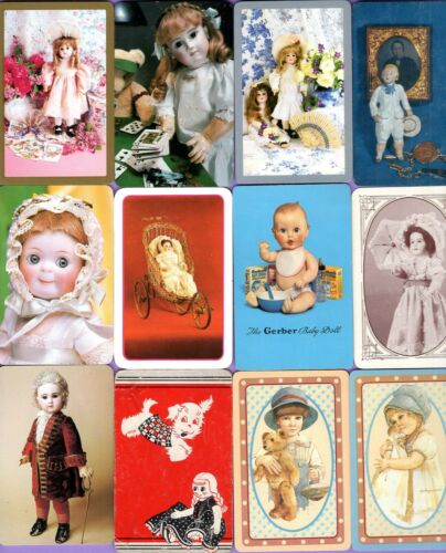 12 Single Swap Playing Cards CUTE ANTIQUE DOLLS VINTAGE TOYS BUGGY TEDDY BEAR