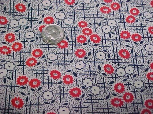 Title (ebay affiliate link): Vintage Antique Cotton Quilt Doll Fabric 34" Wd Tiny Floral RED White & Navy