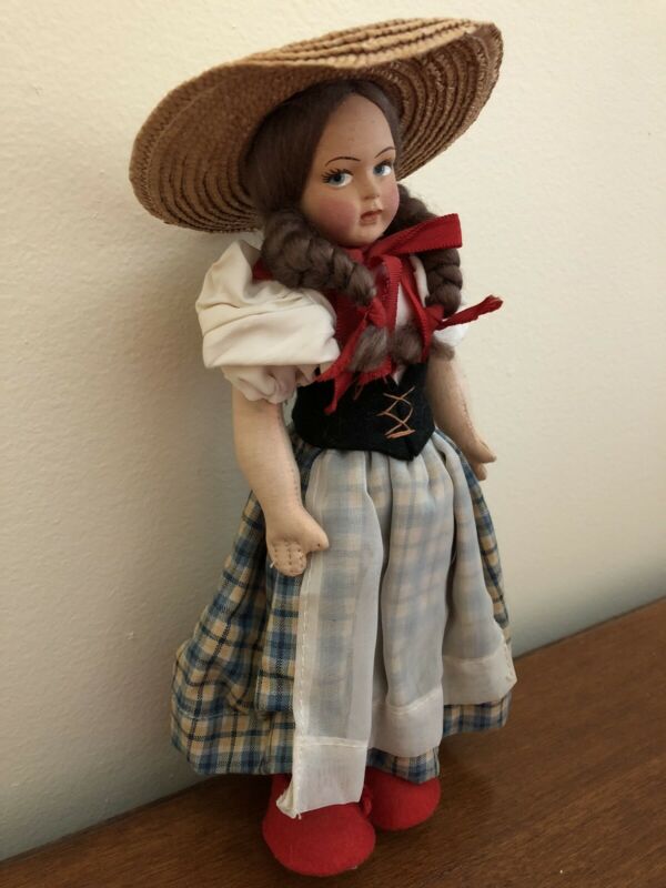 Title (ebay affiliate link): Antique Cloth Body Molded Face Collectible Doll Mint Condition (Swedish?)