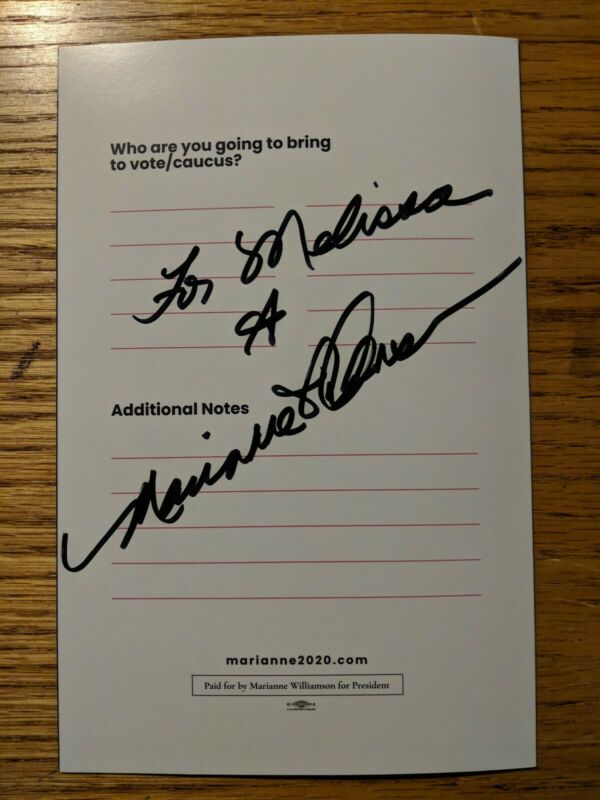 Title (ebay affiliate link): Marianne Williamson Signed Campaign Flyer For Melissa President 2020 Rare
