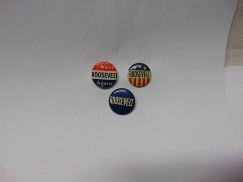 Title (ebay affiliate link): 3 Vintage 1930s Roosevelt Pins Franklin Delano Roosevelt Campaign Buttons