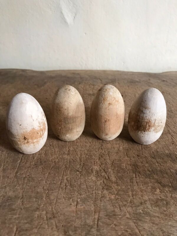 Title (ebay affiliate link): 4 Old REALISTIC Wooden Nesting Chicken Eggs Worn White Paint AAFA