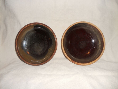 pair of Antique 19th C Pottery PA Stoneware Glazed 7" pie plates
