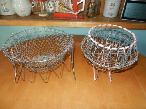 2 Antique Wire Collapsible Egg Gathering Basket PINK Rustic Farm Decor EASTER