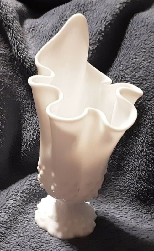 Title (ebay affiliate link): Vintage Fenton Milk Glass Hobnail Stretch Vase,7.5", Handkerchief Hem