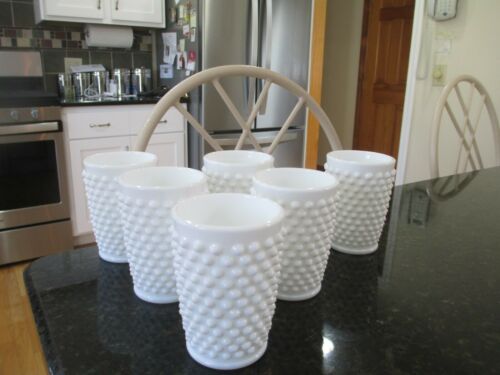 6 Fenton Milk Glass Hobnail Juice Glasses EXCELLENT