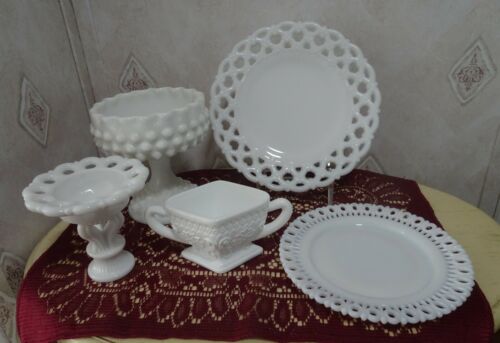 5 Pieces of White Milk Glass Plates Bowls Candy Dishes