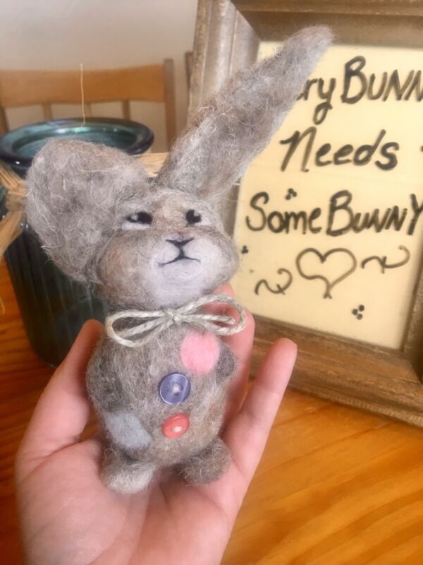 Title (ebay affiliate link): OOAK PriMitive Style Bunny Basket Decor Needle Felted Wool Art Easter FREESHIP