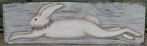 *~*PRIMITIVE*~* HP FOLK ART PRIM LEAPING BUNNY *~* EASTER *~* SPRING *~* BOARD