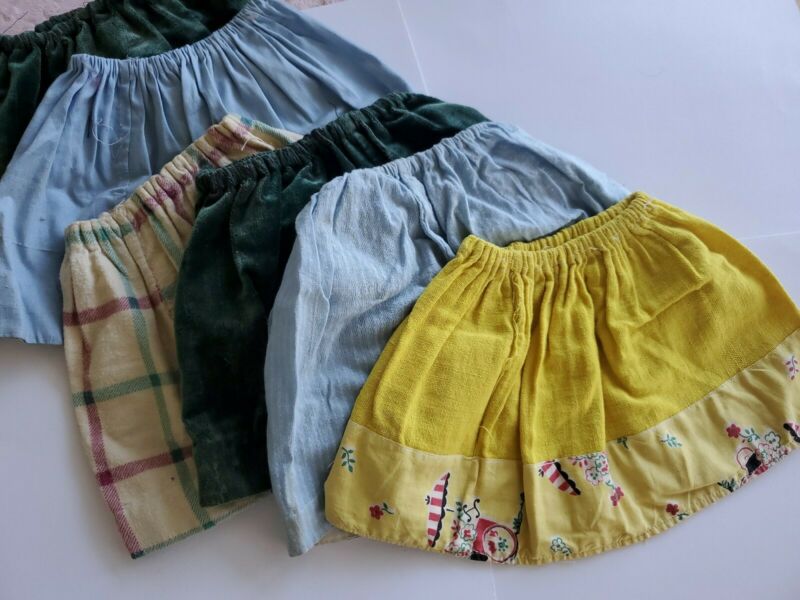 ANTIQUE HANDMADE DOLL CLOTHES LOT 6 SKIRTS, VINTAGE Fabric,great for OLD DOLLS