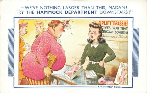 Title (ebay affiliate link): Bamforth Comic Postcard: Big Boobs, BBW Fat Lady, Bra & Lingerie Theme