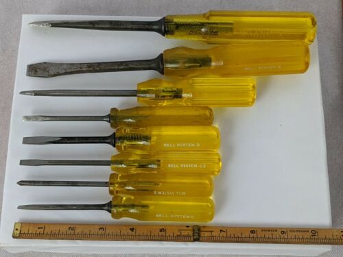 Title (ebay affiliate link): RARE Vintage Bell System screwdriver set of 8 telephone lineman yellow