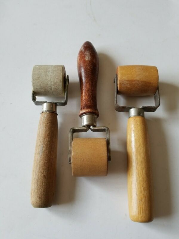 Title (ebay affiliate link): Vintage Lot Of 3 Wooden Wallpaper/Leather Seam Roller Tool Wood Handle Roller