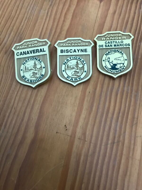 Title (ebay affiliate link): 3 Florida Junior Ranger Badges. Biscsyne, Canaveral, Castillo De San Marcos